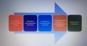 Voluntary Unemployment Funds- the earliest form of UI which constituted a form of self-insurance, established by employees, trade unions and employers. These forms of unemployment insurance schemes were practically in vogue in the 19th century.